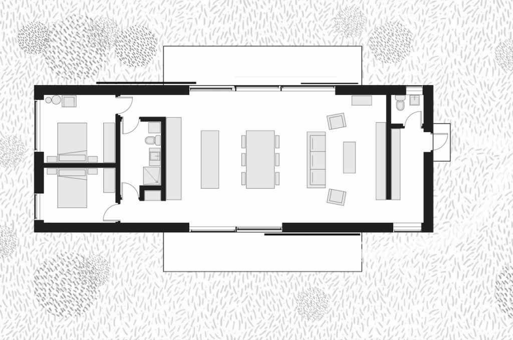 The simple architectural expression fits into the countryside without attracting too much attention while offering a spacious day zone for social activities with an exceptional view of the Blokhus dunes.